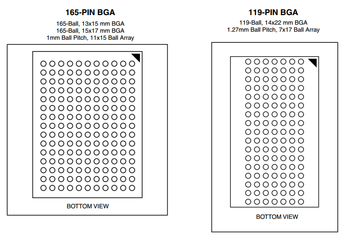 | 72Mb | 2Mx36 | IS61VF204836B | 2.5V | 2.5V | 133,177 | 6.5,7.5 | QFP(100),BGA(165),BGA(119) |