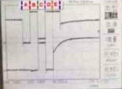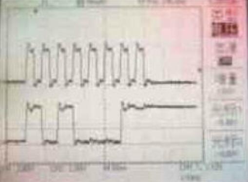 將示波器的通道1連接到寫使能信號,通道2連接到數(shù)據(jù)端D7。如圖1 所示,上方的波形為通道1接收的數(shù)據(jù),下而的波形為通道2接收的數(shù)據(jù)。設計輸入向量測試,當?shù)刂窞镺OO時,將片選端CS置為低電平,圖1 中,A區(qū)WT=*0”,RD=“1“,RD= “0”,讀出寫入數(shù)據(jù) 為“0”; B區(qū)WT=“1”,數(shù)據(jù)為“0”; C 區(qū)WT=“0”,RD=“1”,寫入數(shù)據(jù)為“1”D 區(qū)WT-“1”,RD-“1”,為了更好地觀察讀出“1”時端口的電平變化,該段不進行讀寫,在輸出端口上加弱的低電平信號; E區(qū)WT=“1”,RD=“0”,讀出數(shù)據(jù)為“1”,可明顯地看到讀出數(shù)據(jù)“1”的過程。從圖中可以看到數(shù)據(jù)“0”和“1”被成功地寫入和讀出。