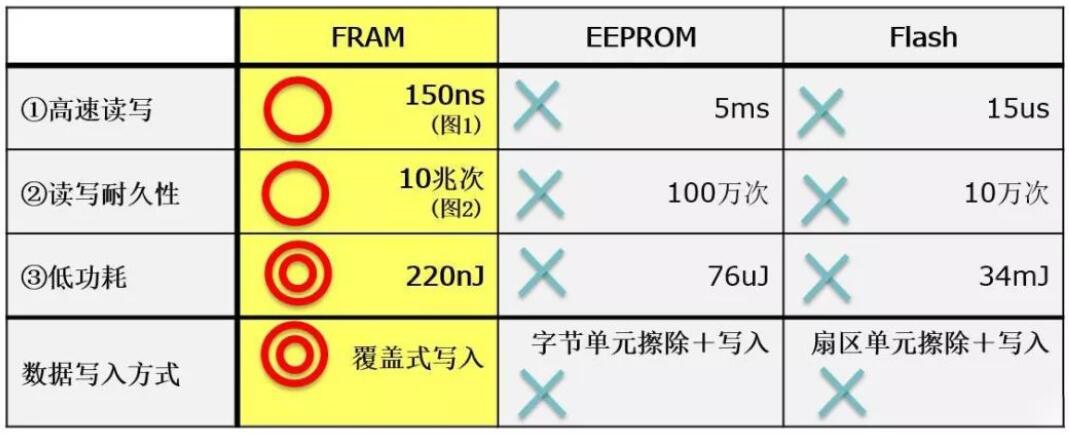 FRAM具有ROM和RAM的特點(diǎn),在高速讀寫入、高讀寫耐久性、低功耗和防竄改方面具有優(yōu)勢(shì)。