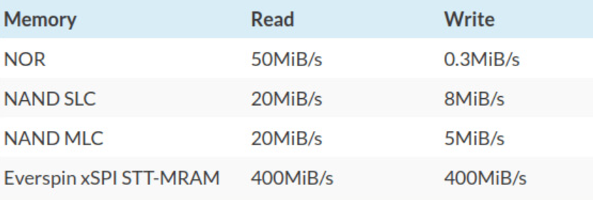 xSPI MRAM的主要亮點(diǎn)是400MB/s的讀寫速度,因?yàn)檫@個(gè)速度是NOR或NAND等閃存設(shè)備的數(shù)倍,在寫入方面甚至更高。該產(chǎn)品的其他好處,比如:在編程之前無(wú)需擦除、高效寫入(比NAND 低10倍,比NOR低200倍),以及可以兼容舊軟件的NOR閃存模式。