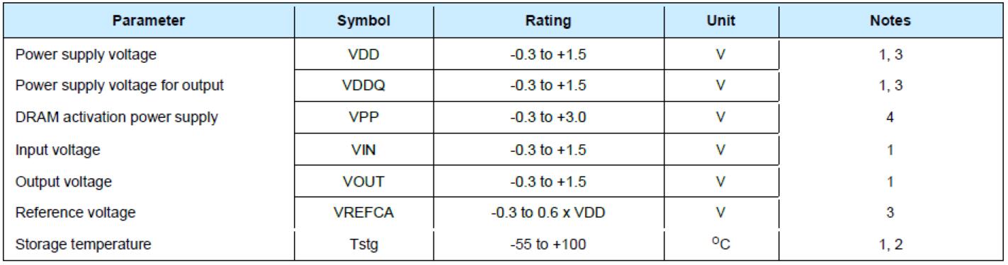 3. VDD和VDDQ始終必須在300mV之內(nèi)。當VDD和VDDQ小于500mV時,VREFCA必須不大于0.6×VDDQ;VREFCA可以等于或小于300mV。