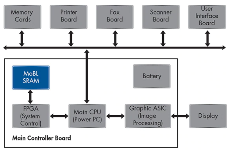 多功能打印機(jī)(MFP)是MoBL®SRAM器件的主要應(yīng)用領(lǐng)域。多種數(shù)據(jù)永久或臨時(shí)存儲(chǔ)在MFP內(nèi)存中。硬盤驅(qū)動(dòng)器(HDD)或閃存驅(qū)動(dòng)器存儲(chǔ)各種類型的用戶信息,而用戶工具設(shè)置,網(wǎng)絡(luò)設(shè)置和配置數(shù)據(jù)則存儲(chǔ)在專用的MoBL®SRAM中。SRAM還用于作業(yè)狀態(tài)和字體表。數(shù)據(jù)對(duì)于設(shè)備的運(yùn)行至關(guān)重要,并通過(guò)電池的電源循環(huán)進(jìn)行保護(hù)。因此,MFP設(shè)計(jì)需要具有高可靠性和低錯(cuò)誤率的