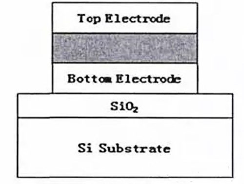 RRAM的原理是通過特定的薄膜材料的電阻值在不同電壓下呈現(xiàn)的電阻值不同來區(qū)分0和1的值。RRAM的存儲單元具有簡單的金屬/阻變存儲層/金屬(MIM)三明治結(jié)構(gòu)如圖三示。